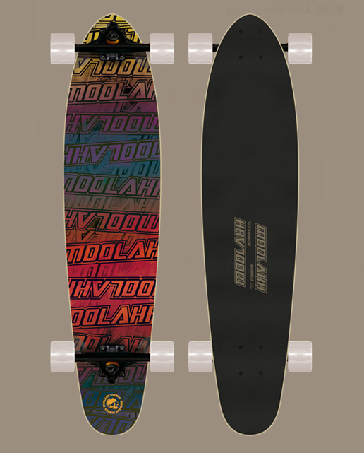 Línea Summer time by Moolahh Boards. Tablas de longboard truck mounted con kicktail shape y trucks invertidos. Son, por su tamaño y forma, cruisers ideales para salir a disfrutar de un paseo relajado.